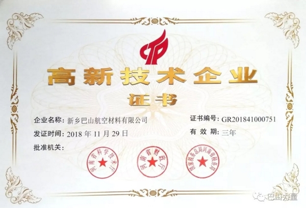 2018年11月,巴山公司憑借堅(jiān)實(shí)的技術(shù)實(shí)力再一次通過(guò)國(guó)家“高新技術(shù)企業(yè)認(rèn)定”。這是自2009年巴山公司開始進(jìn)行高新技術(shù)企業(yè)認(rèn)定工作以來(lái),第四次通過(guò)高新技術(shù)企業(yè)認(rèn)定。