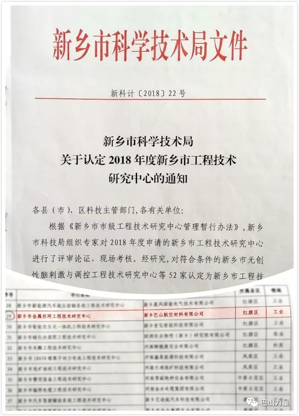 2018年9月,經(jīng)過(guò)評(píng)審論證、專家現(xiàn)場(chǎng)審查,巴山公司研發(fā)中心通過(guò)“新鄉(xiāng)市工程技術(shù)研究中心”認(rèn)定。這是巴山公司在項(xiàng)目研發(fā)、產(chǎn)品試驗(yàn)、研發(fā)團(tuán)隊(duì)建設(shè)等方面具備較高水平的又一次證明。